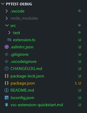 查看目录结构,其中最重要的文件是package.json和extension.ts,其他文件暂不关注